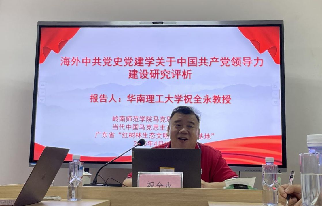 祝全永“海外中共党史党建学关于中国共产党领导力建设研究评析”为主题作专题学术报告,围绕中西历史观的互鉴交融:马克思主义史学观和西方史学观、海外关于中国共产党领导力建设研究评析等方面进行讲授。