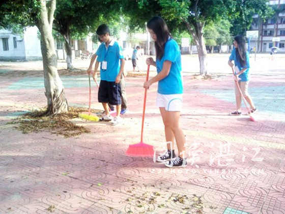 碧海银沙网7月15日讯 7月15日,湛江师范学院物理院“传承”实践队再次带领部分学生,对南三二中的校园和校园附近的街道进行彻底的打扫, 以给老师和同学们营造一个干净卫生的学习生活环境。