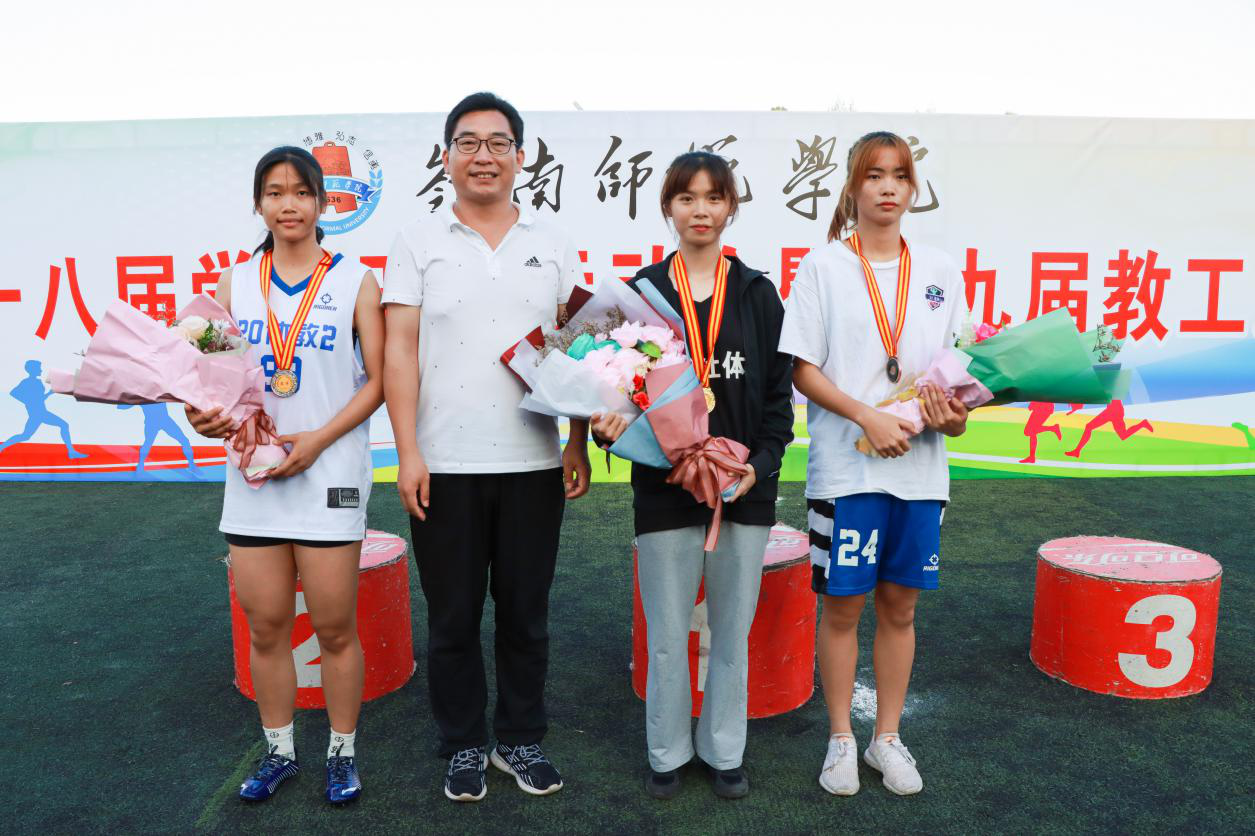 岭师新闻中心讯:11月20日下午,第28届校运会正如火如荼地进行着,烈日当空,运动员们依然精神抖擞,女子专业组跳远决赛也在赛场上正式拉开了帷幕。经过激烈的角逐,来自20社体的朱茵以4.81米的优异成绩夺得桂冠,20体教2班的刘奕清以4.76米的成绩获得亚军,来自20社体的梁碧云与19体教1班的彭碧莹以4.71米的成绩并列季军。