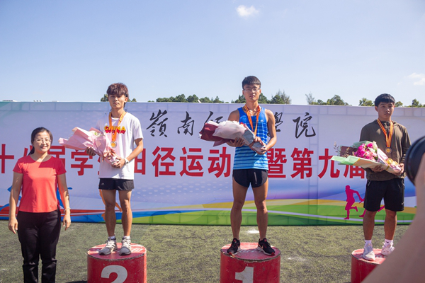 岭师新闻中心讯:碧空如洗,晴空万里。11月20日上午,400米男子专业组决赛如期进行,现场准备有序。来自20社体王诗华以54秒69夺得冠军,19体教三班庄湘发、19体教四班何讯杰分别以55秒35、55秒94的成绩拿下季军和亚军。