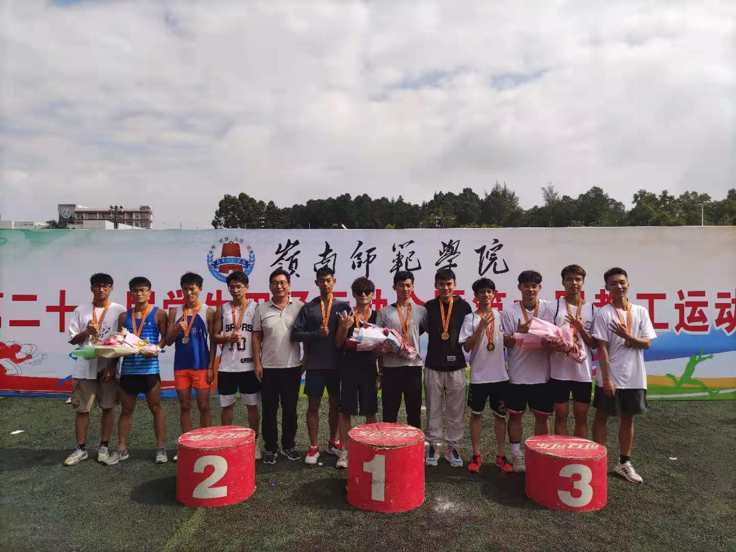 岭师新闻中心讯:11月21日上午,风和日丽,艳阳高照。校运会赛事已过半,在观众那澎湃的热情和呐喊中,男子专业组4×400米接力赛落下了帷幕。来自19体教3班的陈斜霖、陈梓邦、李浩鸿、庄湘发以3分43秒的佳绩荣摘桂冠,20社体和20体教3班分别荣获亚军和季军。