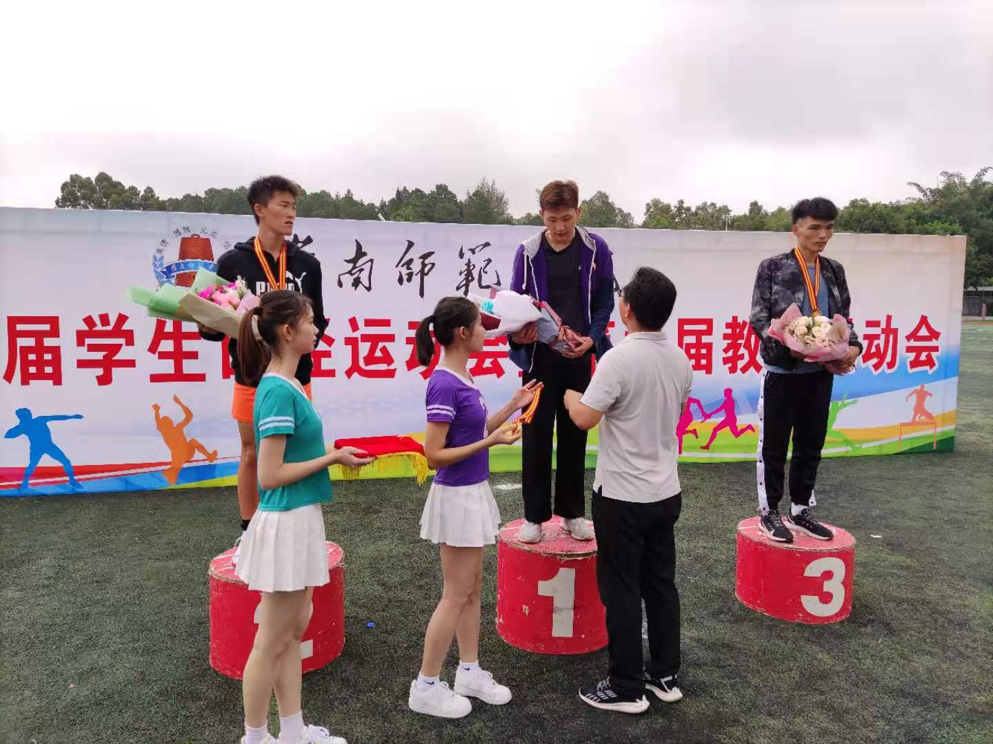 岭南新闻中心讯:11月21日上午,惠风和畅。男子专业组400米栏在田径场上如期举行,健儿们全力以赴,朝着同个目标冲刺。经过激烈的角逐,最终,来自19体教4班的刘炜城率先冲过终点线,以01分03秒54的优异成绩夺得冠军。来自20社体的毕岩、20体教1班的李童分别荣获亚季军。