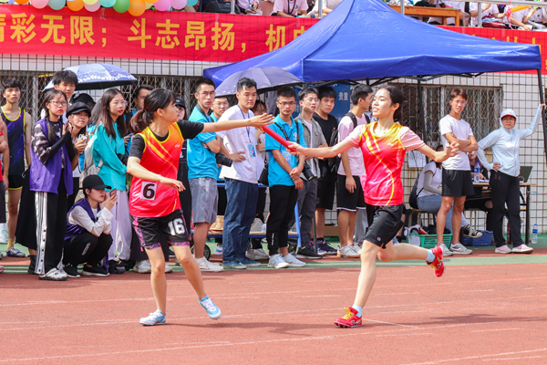 岭师新闻中心讯:11月21日上午,阳光明媚,微风和煦。女子普通组4*400米接力比赛如期举行。随着裁判的一声枪响,首位队员便如离弦之箭一般冲了出去,观众席上数计学院拉拉队的喊声不绝于耳,鼓声阵阵如雷。开局数计院便遥遥领先,位列第一。但队员们没有因此松懈而放慢脚步,她们依然奋力奔向终点。交接棒过程顺畅,队员们之间配合默契。最终,数计学院队伍以5:00:32的成绩夺得冠军。