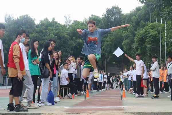 岭师新闻中心讯:11月21日早上,田径场上热火朝天,女子普通组三级跳远比赛正在紧张进行中。经过几轮激烈的角逐,来自19化学与化工学院的吴小雨最终跳出11米的优异成绩,刷新了由其自身创下的上一届校三级跳远记录,强势夺冠。