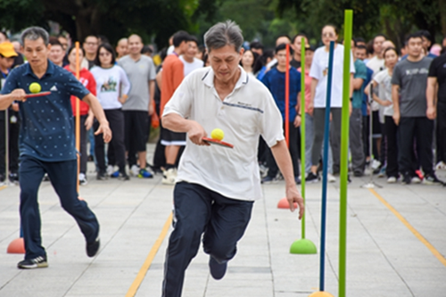 岭师新闻中心讯:11月21日,第九届教工趣味运动在雷阳广场正火热进行中。今天的决赛项目共有七个,有超级保龄球、车轮滚滚、托网球“S型”绕杆接力等等,教工们轻装上阵,早早在比赛场地等候检录,现场一片欢声笑语,气氛十分活跃。教工们把此次活动当作一次放松身心的游戏,坚持友谊第一,比赛第二。