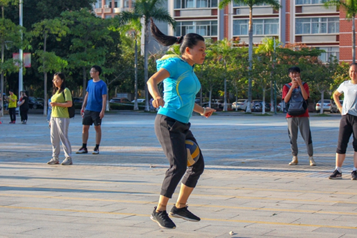 各位老师热情高涨,齐齐热身,加强练习,尽力争取好成绩。比赛过程中,各位老师互相鼓励,场上趣味氛围十分浓烈。雷阳广场的大舞台是一分钟跳绳比赛的比赛场地,跳绳比赛开始前,各位老师都在做伸展运动,积极备战,老师们跳绳方式既有交叉式,也有并步式。而在夹球竞速的比拼中,经过多次练习,夹球竞速项目老师们用腿夹球,有的在夹球时力求平稳,有的前进过程中兼顾步速,顺利完成了夹球竞速比赛。最为精彩的莫属背夹球跑了,讲究合作的背夹球项目对老师们是一种默契和技巧的考验。很多老师前半程步调一致,平稳行进,遥遥领先,进入后半程却因加速前进而丢了默契,最终被反超,在场观众纷纷为其感到可惜。