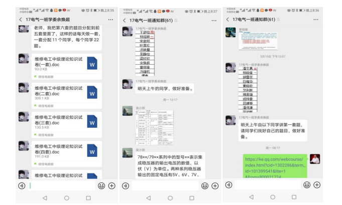 微信与学生的互动截图