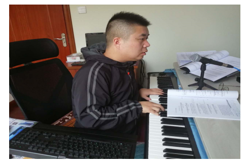 为了让学生看到上课时写作的每一个音符以及键盘弹奏示范的每一个琴键,充分挖掘线上教学的互动可能性,也为了让学生消除网上学习的紧张情绪,蒋龙老师认真研究网络教学的方式方法,经过与学生多次的沟通、交流,决定采用钉钉窗口分享叠加模式,这种选择可以将多个窗口进行组合排列,避免了多个软件的来回切换,从而产生更好的画面布局。
