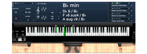 在键盘弹奏方面,为了保证每个学生都能看清弹奏的每一个琴键,老师将键盘弹奏的信号传输一路给键盘模拟软件,这样在弹奏中,软件会同步指示出每一个触发信号的琴键。