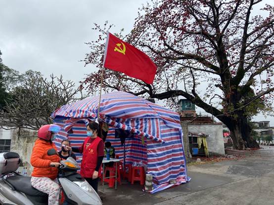 面对疫情,梁诺渝积极投身到当地的防疫工作中,主要负责登记出入车辆、向村民宣传防疫知识和测体温等。她认为,我们虽然无法到达“正面战场”作战,但可以做好自己力所能及的工作,时间证明着我们这些小小的举动是有效的!只有落实到每个关卡,严把每个关卡,中国的“春天”才会如约来到!