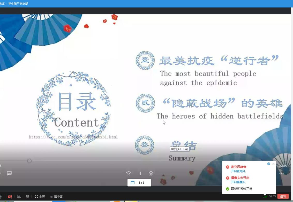 疾风知草劲,烈火见真金。疫情汹涌之际,涌现了一批批平凡又伟大的战疫英雄。支部党员翁悦同志结合自身专业性质,以双语方式讲述了最美逆行者倾心付出的暖心故事,诠释战场英雄的赤子丹心,激发全体党员越是在关键时刻越要挺身而出,真正做到不忘初心、牢记使命。同时也致敬每一束“爱国护民”的凡人之光