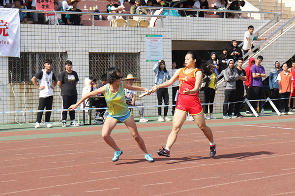 比赛前,运动员们姿态放松,时而拉伸、时而蹦跳,做着充分的热身,观众席传来一阵又一阵的欢呼声,纷纷为这场比赛呐喊助威。随着一声枪响,三位运动员如离弦之箭冲出起跑线。一圈下来,率先出现在众人视线的是运动人体系的运动员,紧跟着18体教和17体教也不甘示弱,同时接过接力棒。运动人体系接力第二棒是来自19人体的陈晓彤,她一接过棒就飞奔起来,势头十足,跑完半圈之后,领先于其他两位运动员大约两百米的距离,这为她们的接下来的比赛取得了极大的优势。三四棒交接时,仍旧是运动人体系领先,18体教和17体教三四棒接棒时出现差错,但她们仍旧奋力追赶,最终将距离缩短至50米。最后50米,运动人体系第四棒运动员继续稳步前行,率先冲过终点,拿下冠军。