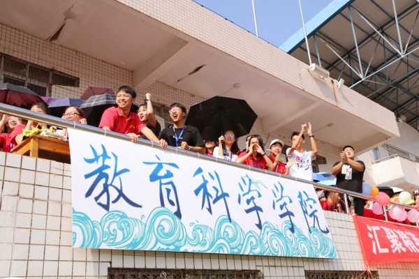 当金色阳光照耀在岭师的田径场时,赛场上的震天鼓点和扯着腮帮子的加油声,已经“拉帮结伙”地给予回击。一声声“教科院加油!加油教科院!”的喊声与其他学院的喊声碰撞,激荡出振奋人心的力量。