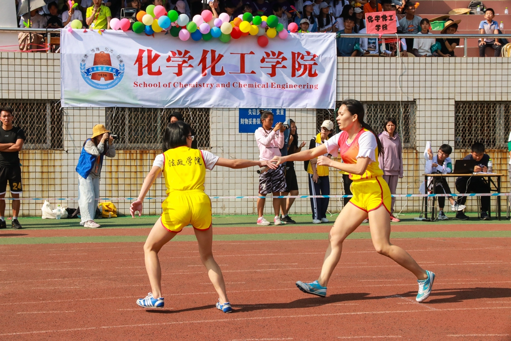 四条完美的弧线,被一根小小的棒儿连接,为观众们呈现了一场非凡的视觉盛宴。用身影画出这四条完美弧线的奇女子,便是在女子普通组4×400米接力赛上以4分42秒的好成绩斩获冠军的一支队伍。她们分别是来自法政学院17思政1班的黎舒婷、18公管的梁咏诗、18法学1班的何晓霞和19思政1班的黄翠雯。