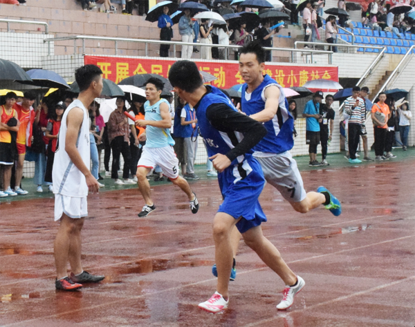 雨变小了,淅淅沥沥,绵绵不绝。天空是朦朦的诗意,跑道两旁则是激动人心的欢呼声。看,一个矫健的身影正突袭而来,刹那间超越了前面的一个选手。他,便是黄海豪,教科院的一个具有多项运动特长的男生。
