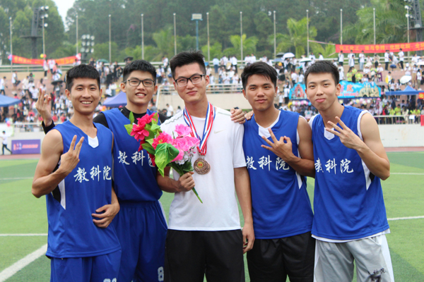 在第二十六届学生田径运动会比赛中,教科院荣获男子普通组4×400米接力决赛第三名。接下来,让我们带着兴奋走进这个小组。小组成员分别是:17小教1班黄海豪、17心本2班杨启豪、18心本1班钟峰强和18小教1班黄文涛。