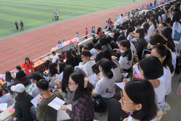 来自16小教1班的崔晓君兴奋地告诉记者,这已经是她第三年在场下为运动员们加油了,即使不再是第一次做拉拉队队员了,但她还是兴奋地一大早便醒了过来。她提到,看到运动场上的教科院运动员们时她便感到无比骄傲,希望他们在迈向终点获得成功的那一刻,能够听到自己的呐喊声,那是她送给运动健儿们的祝福。