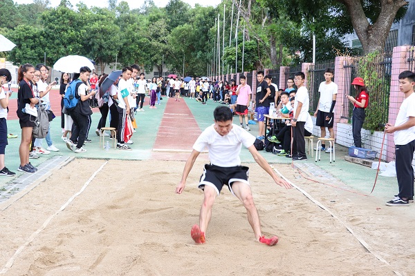 他,就是周潮海,来自17中本3班。这是他第二次参加校运会。在此次校运会男子跳远决赛中,他取得了第四名的成绩。