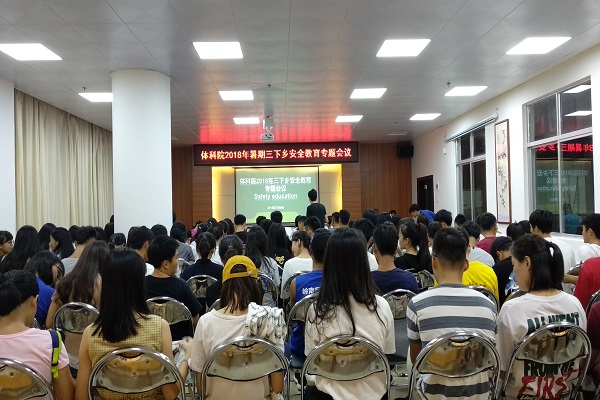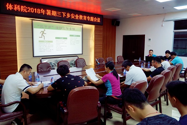 为提高参加三下乡的人员的安全意识,保障暑假“三下乡”的顺利举行,7月9日晚,体科院团委实践部于体育馆会议室召开2018年体科院“三下乡”安全教育专题会议。体科院党委书记邱飞、体科院党委副书记郑晓辉、辅导员莫毅老师、伍文海老师、陈静老师、叶萃蓬老师和各实践队指导老师以及各队伍的正副队长、组长出席了此次会议。