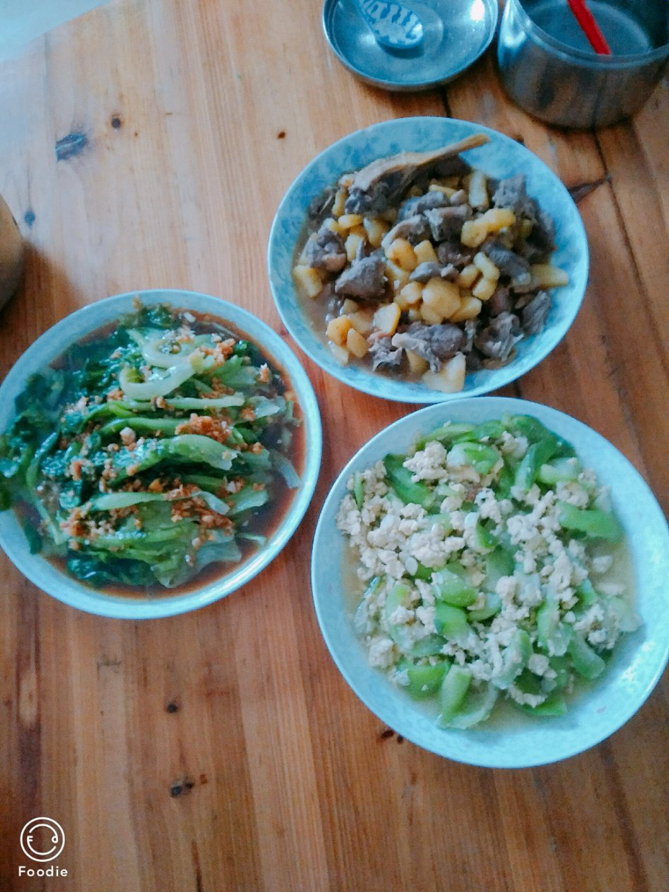 大家还在上课的时候,后勤组又在厨房忙碌了起来。晚上大家又可以大饱口福了,土豆焖鸭,土豆软绵,鸭肉紧实,是一道很好的下饭菜。蒜蓉生菜蒜蓉味道充足,有滋有味。丝瓜炒蛋是第一个被队员吃完的菜,可见其受欢迎程度。特别是晚上还有队员精心做的猪蹄,入口软烂,肥而不腻,香气扑鼻,在三下乡期间品尝到“妈妈的味道”,着实令队员们对队伍更向往和更熟悉和贴近了。