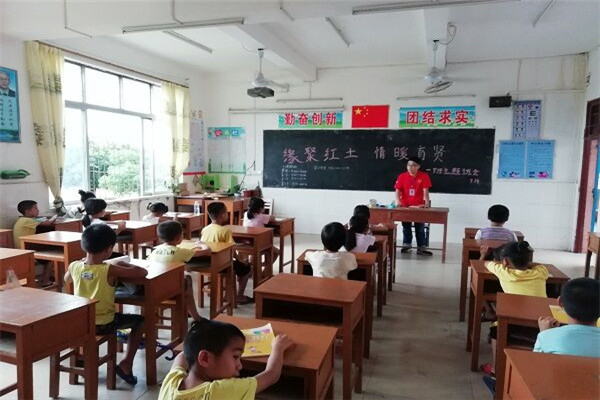 课堂上,班主任向同学们布置平时上课的时间安排以及对上课内容逐一进行介绍。为了丰富学生们的学习生活,培养学生对课外知识的兴趣,“红土情缘”社会实践队还精心为同学们准备了丰富多彩的第二课堂。在第二课堂中,他们可以学习舞蹈、武术、话剧、绘画、手语、歌唱、健美操、走秀等平时课堂学不到的内容。