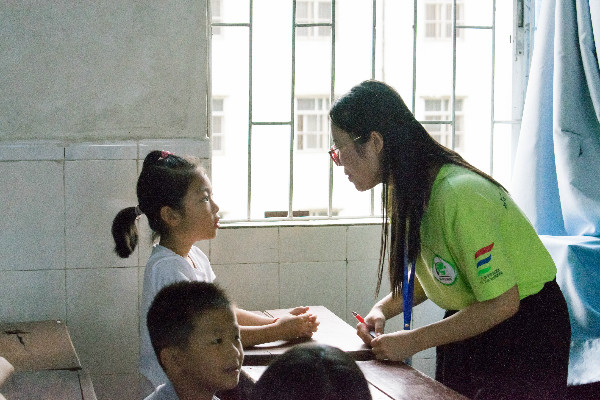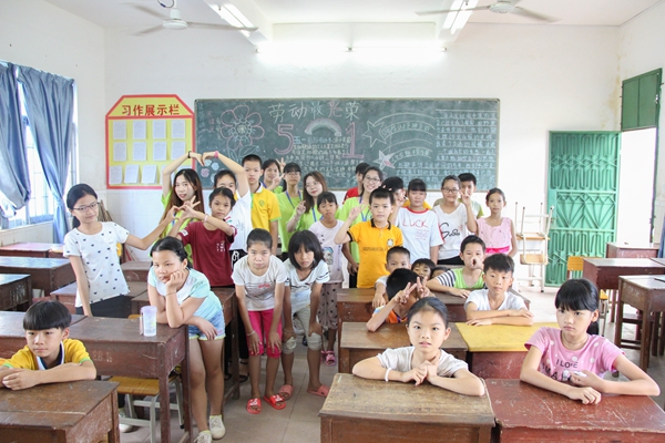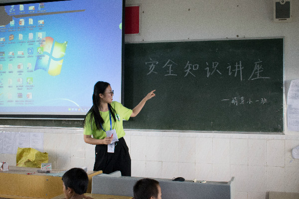 “大家好,我叫小冰。”“你叫什么名字?告诉大家好不好?”实践队员与孩子们的初次见面由自我介绍开始,“小老师”与孩子们依次上台自我介绍,大手与小手交替写下自己的名字,偶有孩子害羞,同学们齐声鼓励,欢声笑语充斥了整间教室。