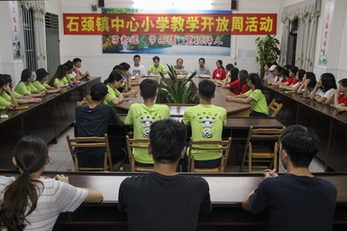 7月14日晚,体育科学学院“萌芽”社会实践队在抵达石颈中心小学之后,参加了该小学召开的安全教育会议,并与校方达成共识。