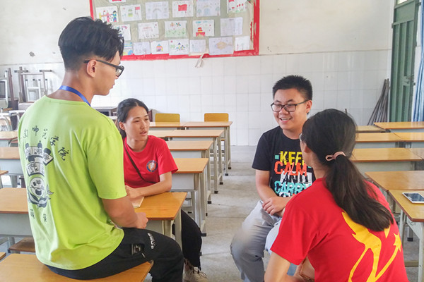 由于三支队伍同时驻扎同一个学校基地的情况比较罕见,“萌芽”、“逐梦之星”和“星火”实践队的队长团在开班仪式结束不久,便立刻召开短会,讨论、商量学生课堂问题和队伍之间的合作问题。“期待我们在接下来的时间能够保持沟通和交流,唯有合作才能共赢!”湛江幼儿师范专科学校“星火”实践队副队长林冬晓说道。而广东金融学院“逐梦之星”队长房超则认为,在实践过程中要以大局为重,不轻易以感情用事。