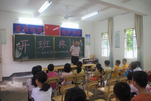 7月15日上午,岭南师范学院“弈鸣”社会实践队在实践基地遂溪县黄略镇光豪小学一楼教室举行主题为“踏青春齐奉献,弈鸣行注真情”的三下乡开班仪式。出席本次开班仪式的有光豪小学校长欧王冲、“弈鸣”实践队全体以及参加“三下乡”课程的同学。