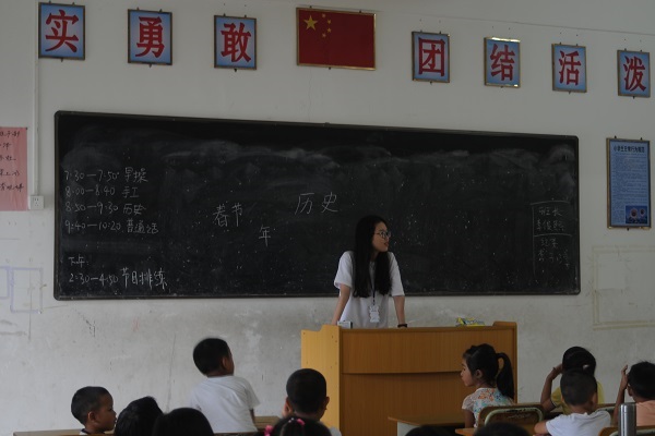 为了弘扬中国传统文化,让同学们从小开始了解历史文化知识,“蒲公英”社会实践队支教活动设置了历史课程,让同学们更深入地了解中国千年传统文化。7月15日,支教队员赖思思为同学们上了一堂讲述中国传统节日的课,用活跃的话语与同学们一同畅谈中国节日。