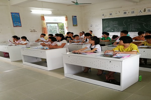 2018年7月15日上午,岭南师范学院化学化工学院“清漪”实践队在湛江市吴川市黄坡镇符屋小学举行了开班仪式,随着开班仪式号角的拉响,符屋小学高年级的英语课也开始了。