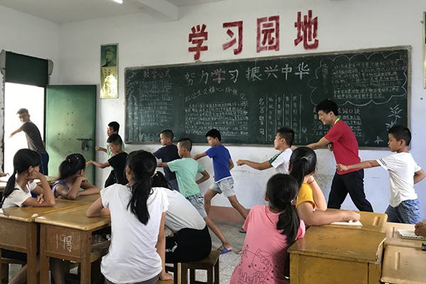 “我读二年级的时候,也有哥哥姐姐来支教过。”来自三班的殷欣怡同学回忆起三年前第一次参加支教活动时,高兴地告诉记者也很高兴能够与姐姐哥哥在这个夏天见面,看到这么精彩的武拳表演,与小伙伴一起度过这个欢乐的暑假。