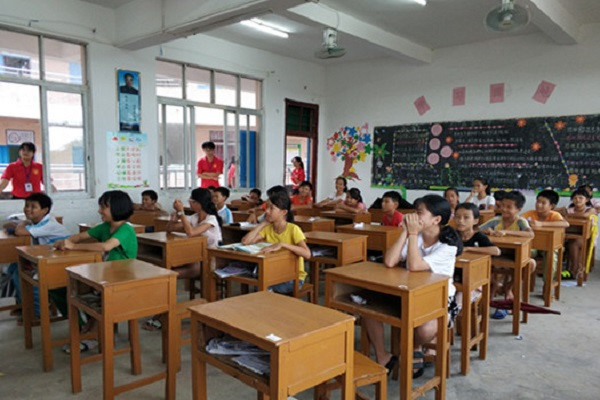 “红土情缘”社会实践队来到育贤的第一天,如愿见到了育贤小学的孩子们,并展开了第一次班会,红土情缘与育贤学子的情缘从此开始。下午两点半,五六年级的孩子已经全部来到了教室,他们坐在自己的位置上满怀期待地看着讲台上的两位班主任,期盼着班会的开始。