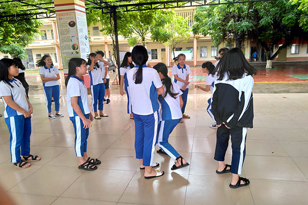 上午9:20,在体育课负责人陈翠兰的带领下,九(3)班的学生来到了教学楼前的一片空地,准备开始他们的第一节体育课,此时此刻,同学们的脸上都写满了兴奋与期待。然而,天公不作美,吹响哨声的一刻,阵雨突袭,豆大的雨水拍打在所有人的脸上。见此,小老师陈翠兰不得不带领班级转移阵地,原定的篮球训练也不得不取消。学生的情绪明显由开始的期待转而被郁闷取代,观察到学生情绪的小老师,决定采用别具娱乐性的体育游戏“障碍接力赛”来活跃气氛。
