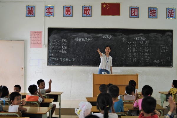 为了锻炼学生的观察能力,提高学生音乐素养,7月16日上午,“蒲公英”社会实践队支教队于马宵村显发学校上了一节生动有趣的音乐课。
