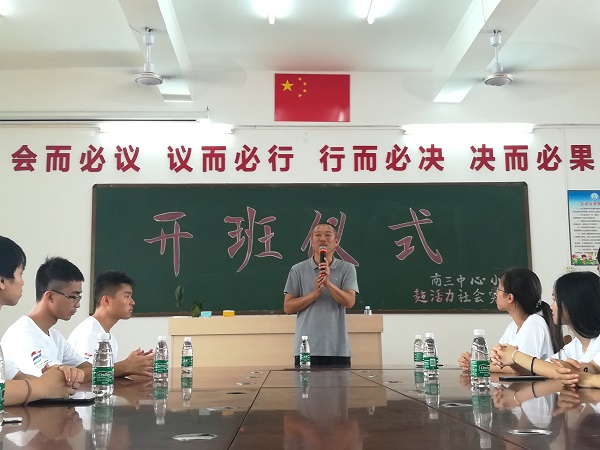 为让南三中心小学的小朋友更加了解“超活力”社会实践队,也让超活力队的队员们更快融入这个支教的大家庭,7月16日早上,“超活力”队于南三中心小学会议室举行开班仪式。仪式嘉宾有南三中心小学校长符彬、“超活力”社会实践队队长梁嘉欣。参与人员还有“超活力”队部分队员和南三中心小学五年级学生。