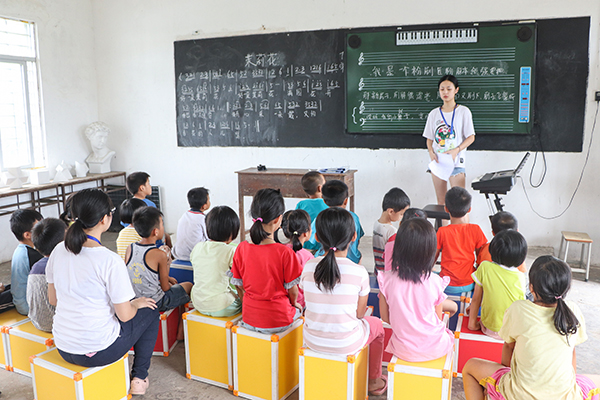 为了让学生具有对音乐美的感受、表现能力和初步的鉴赏、创造能力,教会学生认识生活、感受生活,从而促使学生形成健全的人格和健康的个性,促进学生的全面发展,繁星社会实践队为茂名市高州市石鼓镇西基山小学的学生们开设了音乐课。