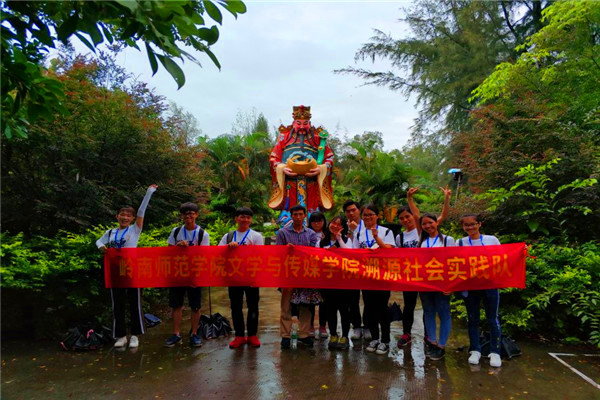 在采访的过程中,秦师傅向大家介绍了他的求艺之路,包括他向简向东师傅学习的经历和他对泥塑的浓厚兴趣;他还向大家讲述了吴川泥塑与中国各地泥塑传承地之间的故事,并指出吴川泥塑所存在的不足以及简略地提出其发展的方向和改进的方法。秦师傅还指出,吴川泥塑相较于天津地区的泥塑,其不足之处在于颜色方面,他提出吴川泥塑要从颜色方面进行改革创新的建议。同时还强调传承非遗文化既需要不断学习、练习,此外还要积极向其他传承工作做得好的地方政府借鉴。随后,秦师傅在雨中带领队员们参观泥塑园,他一边向我们介绍那些雕像人物的历史事迹,一边给大家介绍它们的制作工序和过程。溯源队员们认真听着秦师傅的讲解,同时也积极做好录音和拍照等记录工作。这为后期资料的收集工作做好了准备。