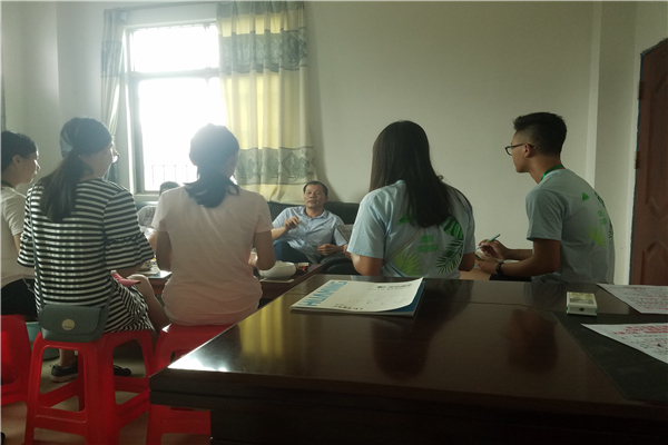 调研组在访问符屋村村民委员会主任 (练丽明 摄)