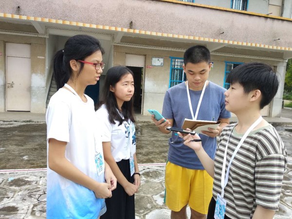 谈及文艺组的近期工作时,陈野熟悉地回答说:“我们近期的工作主要是筹备7月23日的文艺汇演活动,现在还处于制作节目单的阶段。因为节目是根据支教组的课程来安排的,所以我们文艺组就需要从课程中选取可行性比较强的课程或主题编排节目单。”“我们现在已经有一些确定的节目单了,比如说:唱歌、魔术表演、环保手工展示。与此同时,现在我们已经开始让学生报名参加我们已经确定了的节目表演,就现在的情况来看,三四年级班的同学很积极报名,五六年级班的学生打算合唱一首歌。”黄晓桐欣喜地接着补充道。在繁琐的筹备过程中,文艺组也遇到了一些困难。例如写节目策划书和主持稿对于她们是从未接触过的领域,所以在开始的时候她们也十分担心做不好这些工作,于是她们就摸着石头过河,“边走边看”最后一步一步地摸索出了门路,“解锁”了一些新技能,圆满地完成了任务。在采访的最后,她们表示非常希望能把文艺汇演办好。