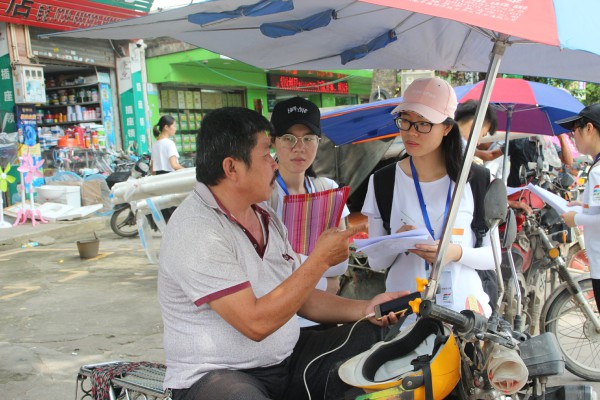 经过一番辗转,队员们终于顺利到达河唇镇。这次队员们主要以派发问卷的形式进行调研,队长根据每个组员情况,提前将队员们分成五个小组,每个小组负责一个小地方。