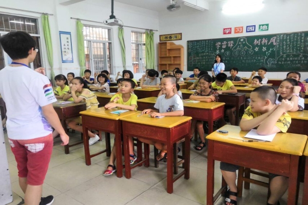 2018年7月19日商学院依米花社会实践队正式开课,小朋友和小老师们正式见面。