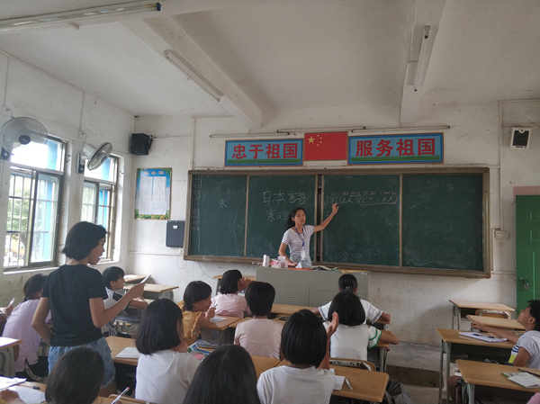 为了激发学生学习语言的兴趣,培养学生掌握外语的能力,岭南师范学院“诚心诚意”实践队于臧家小学特设趣味日语课程。2018年7月20日上午,特色日语课程在六年级开展,由支教老师朱雪华主讲。