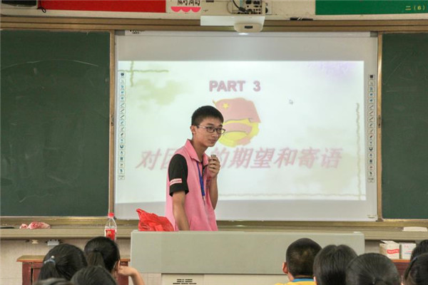 为了提高团员思想理论水平和政治素质,提高学生们整体的思想政治素质、政策理论水平、创新能力、实践能力和组织协调能力,使学生们进一步坚定跟党走中国特色社会主义路线的信念,让学生们成长为中国特色社会主义事业的合格建设者和可靠接班人。7月21日,瞭望实践队在沙田第一中学开展了微团课的课程。