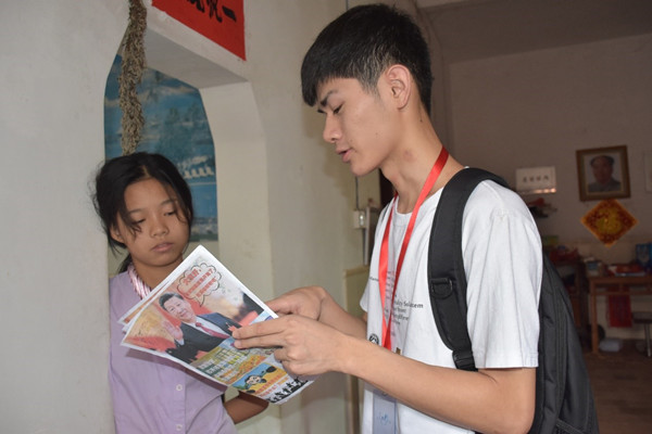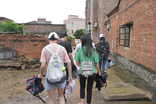 早晨的沙田小学被薄雾笼罩着,天空中飘着小雨,为了后期宣讲活动的顺利召开,队员们早早地便起床出门,即使是阴雨绵绵也挡不住队员们的期待与热情。沙田村的村落较为聚集,队员们分成不同的小组穿梭在小巷子里,挨家挨户敲门将自己手中的活动传单送到村民们手上,仔细为村民解释接下来几天里实践队所有的活动安排并热情地邀请村民前来参与。