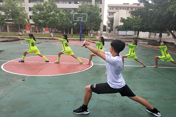 为了传承以“武术”为代表的中国优秀体育文化,加强同学们对传统体育文化的热爱,“筑梦启航”实践队在操场空地上开展了武术教学课程。