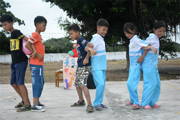 为丰富校园文化,促进学生之间的友谊,也让红土队员们在工作之余、同学们在学习之余得到放松减压, 7月18号早上,天气正好,阳光明媚,“红土情缘”社会实践队在茂名市电白区水东镇的育贤小学举办了一场别开生面的游园活动。该活动有许多精彩无比的游戏;其中,最受欢迎的是夹气球游戏。