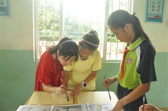 7月19日下午,为了传承中华传统文化的精髓,丰富学生的知识与技能,促进学生多方面发展,岭南师范学院生命科学与技术学院“红嘴鸥”社会实践队钟燕婷老师、邱梓雪老师在孟岗小学的五、六年级进行书法课教学。