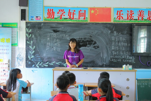 任课老师由实践队队员陈生华担任。她从学科特点、所属类别以及学科应用三个方面开始介绍,引出分属自然科学类的“化学”学科。初闻“化学”,同学们还有些许陌生。
