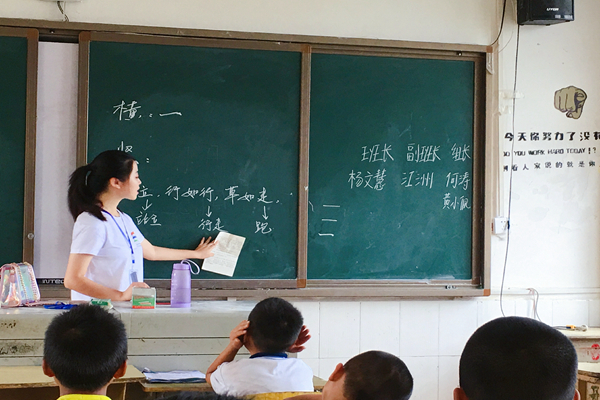 为了指导学生们规范、端正地写字,7月22日,“伴我同行”社会实践队在贵州省铜仁市玉屏县新店镇新店寄宿制学校开展第一节硬笔书法课。